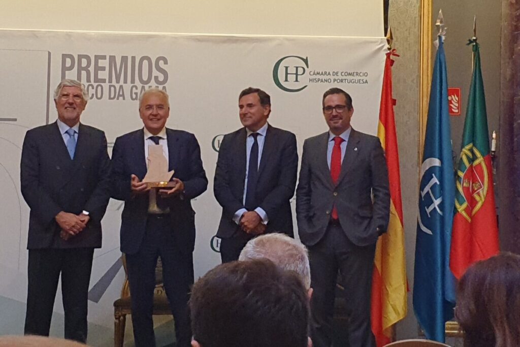 La Cámara de Comercio Hispano Portuguesa ha celebrado el pasado miércoles la entrega de los Premios Vasco da Gama en el Hotel Wellington de Madrid. El evento ha sido presidido por António Calçada de Sá, presidente de la Cámara Hispano Portuguesa, y João Mira Gomes, embajador de Portugal. Entre los agraciados, Luis Valero ha pedido a las autoridades ibéricas que la televisión portuguesa se pueda ver fácilmente en todos los televisores españoles, una vieja reivindicación del movimiento iberista.