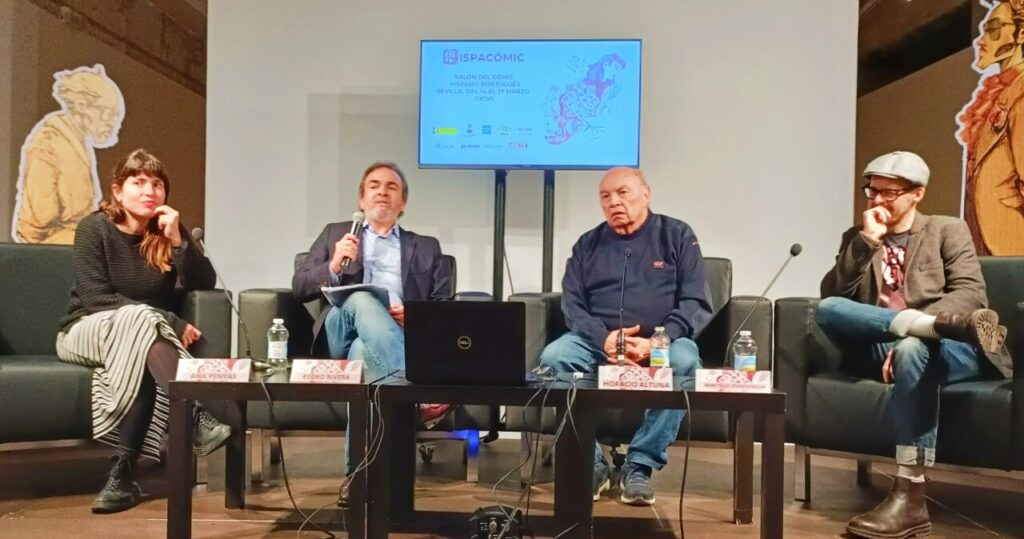El Centro de Iniciativas Culturales de la Universidad de Sevilla (Cicus) acoge hasta el domingo 17 de marzo el Salón del Cómic hispano portugués Hispacómic, una reunión de artistas, editores, críticos y aficionados que evalúa el estado del noveno arte en la península ibérica y en iberoamérica. Con presencia de grandes maestros, como Paco Roca, Horacio Altuna o Rubén Pellejero, y de nuevas generaciones y mujeres, como Ana Penyas, Anapurna o María Medem, el evento reúne a más de 20 artistas y 80 editores, y aloja en Encuentro Tebeosfera 2024 ‘Éxodo de Viñetas’. Hispacómic se celebra con la complicidad del Ministerio de Cultura, el Ayuntamiento, la Diputación y la universidad sevillanas, el Consulado de Portugal y la revista Jot Down.