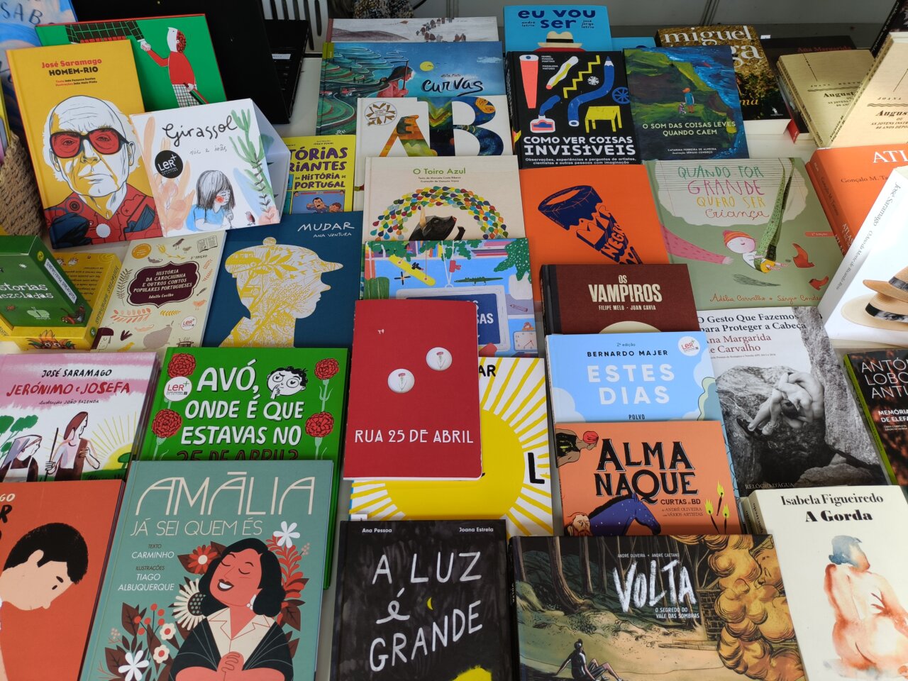 Estos días la caseta de Portugal la atienden las titulares de las librerías presentes, Sofía Correia y Helena Girao dos Santos: sobre los escaparates pueden verse libros de Isabela Figueiredo, José Saramago, Miguel Torga, Lobo Antunes, Bernardo Majer, Ana Margarida de Carvalho y otros, con presencia también de las publicaciones referidas al 50 aniversario de «A Revolução dos Cravos».