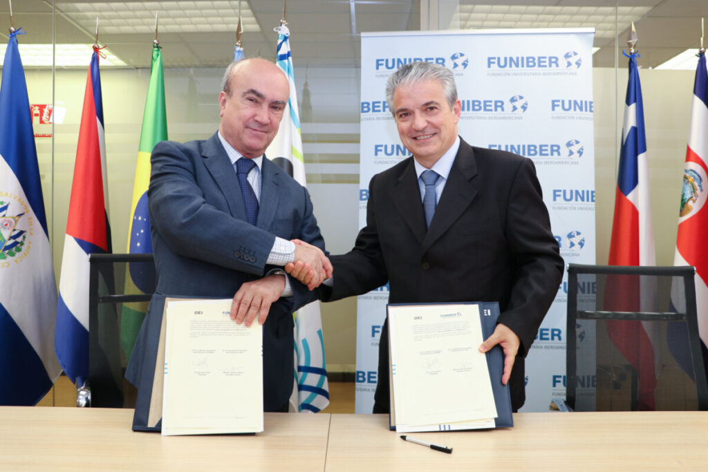 El secretario general de la OEI, Mariano Jabonero, y el presidente de FUNIBER, Santos Gracia, han firmado un acuerdo de cooperación en la sede de la OEI en Madrid. El objetivo de esta alianza es incentivar programas y actividades para la promoción y difusión de la lengua portuguesa en la región Iberoamericana, así como del idioma español en el conjunto de países que tengan como lengua oficial la portuguesa.
