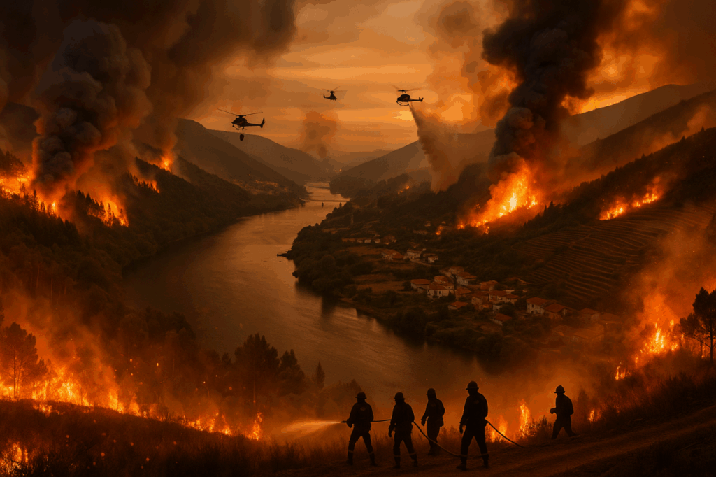 El frente ibérico completa el mapa de riesgo. En Portugal, el gran incendio de Trancoso (distrito de Guarda), con tres frentes activos, moviliza a cientos de bomberos y medios aéreos en plena ola de calor que empuja los termómetros hasta 44 °C y ha provocado evacuaciones en varias aldeas; también se vigilan focos en el norte luso, próximos a la frontera. Las autoridades de ambos países advierten de tormentas secas y rachas fuertes que pueden generar nuevos conatos en la “raia” y en áreas del Miño y del Douro. Con el calor extremo aún previsto varios días, los servicios de emergencia piden máxima prudencia, limitar actividades de riesgo y atender los avisos oficiales.