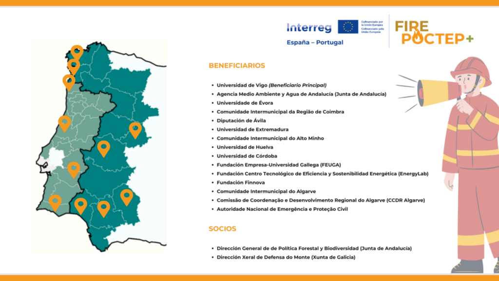 Liderado por la Universidad de Vigo, Firepoctep+ cuenta con un presupuesto de 3,3 millones de euros y tiene una duración de tres años (2024-2026) y un total de 15 beneficiarios de España y Portugal, así como dos socios sin financiación. Firepoctep+ es la evolución vital del «exitoso» Firepoctep, financiado por el programa POCTEP 2014-2020. El nuevo diseño del proyecto busca profundizar las tareas realizadas en su predecesor y ampliar los resultados a través del diseño de protocolos conectados de gobernanza.