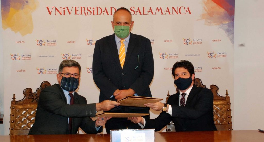 Los empleados del Ministerio que sean admitidos en los cursos tendrán derecho a una licencia remunerada de sus actividades mientras realizan los estudios por un período de tiempo limitado, según se recoge en el convenio suscrito por el vicerrector de Relaciones Internacionales de la Universidad de Salamanca, Efrem Yildiz Sadak, y el jefe del Gabinete del Ministerio de Justicia y Seguridad Pública, Rodrigo Sorrenti Hauer Vieira, que estuvieron acompañados por el vicerrector de Postgrado y Formación Permanente, Nicolás Rodríguez García.