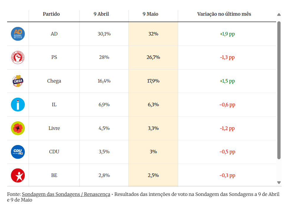 Iniciativa Liberal puede ser ligeramente el beneficiario del voto de desgaste contra Montenegro. No obstante, esto no preocupa al primer ministro porque forma parte de su base fiel de apoyo. Montenegro está comparando su campaña a la de Sá Carneiro, para “unir el país”. Sólo le preocupa si ese desgaste lo capitaliza Chega, lo que tampoco parece que sería un gran trasvase, más allá de un punto porcentual; esto consolidaría al partido de André Ventura como tercera fuerza política.
