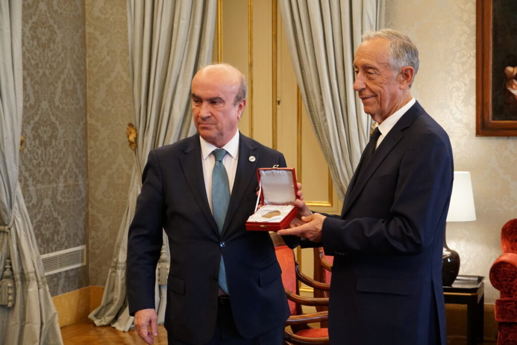 El presidente de la República de Portugal, Marcelo Rebelo de Sousa, ha sido galardonado, este jueves en el Palacio de Belém, con la Medalla de Honor de la Organización de Estados Iberoamericanos (OEI). La distinción ha sido entregada por el secretario general de la OEI, Mariano Jabonero.