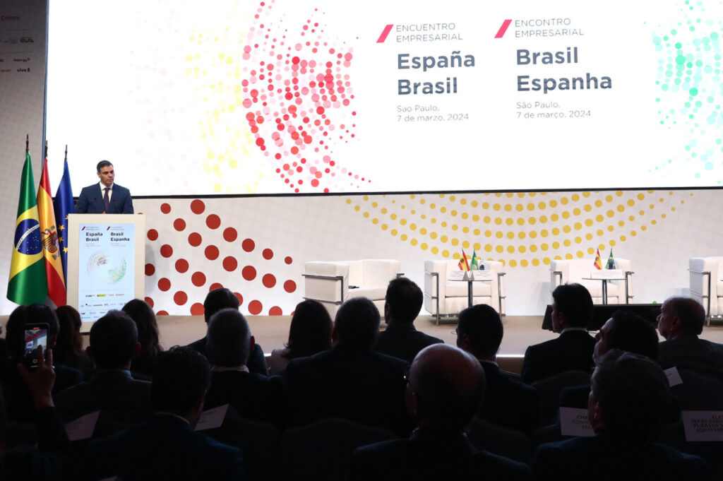 El presidente del Gobierno español ha definido a Brasil como «un país amigo en lo humano, un aliado en lo político y un socio en lo económico» durante el discurso de inauguración del Encuentro Empresarial España-Brasil celebrado en São Paulo. Unas excelentes relaciones económicas y comerciales entre ambos países ejemplificada en sus profundos lazos empresariales, ha recalcado el presidente. España es el segundo mayor inversor mundial en Brasil, solo por detrás de EE.UU., y el segundo destino de nuestras exportaciones a América Latina, ha reafirmado el presidente. Una situación que no es «ninguna coincidencia». Brasil, ha dicho Sánchez, es un destino muy atractivo para las inversiones debido a múltiples factores, entre ellos las políticas implementadas por el Gobierno de Lula da Silva.