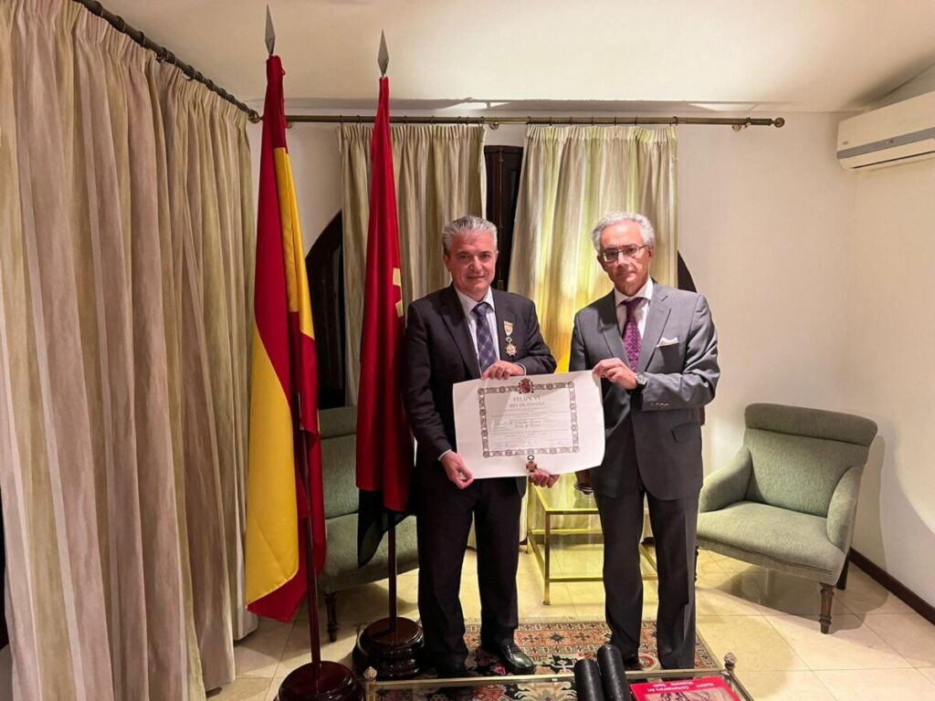 El doctor ingeniero Santos Gracia Villar, presidente de la Fundación Universitaria Iberoamericana (FUNIBER), ha recibido este lunes la Cruz de Oficial de la Orden de Isabel la Católica de manos del embajador español en Angola, Manuel María Lejarreta Lobo. La distinción reconoce la labor de FUNIBER y de toda su red de enseñanza superior.