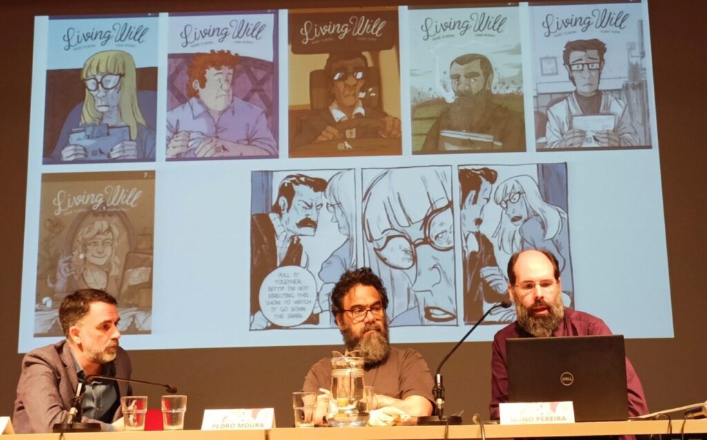 En el coloquio, moderado por uno de los organizadores, Paco Cerrejón, el investigador Nuno Pereira dijo que en 2023 había 98 publicaciones de cómic en Portugal, pero que tan sólo 42 llegaban al gran público. Los ponentes han afirmado que el mercado de la historieta, tanto el Portugal como en España, está colonizado por publicaciones extranjeras, principalmente norteamericanas, japonesas y franco belgas, en una proporción de 9 a 1. Nuno Pereira ha mostrado un listado de artistas portugueses, donde están Filipe Melo, Ana Simões, Álvaro, Francisco Sousa Lobo, Sophia Neto, Paulo J. Mendes, Anna Pessoa, Antonio Aragao, André Oliveiria y otros y otras.