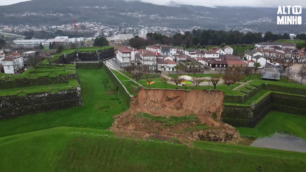 Un dos muros da Fortaleza de Valença derrubouse tras o temporal que sacudiu Galicia e o Norte de Portugal nos últimos días. Tras un primeiro derrubamento o domingo á mañá, produciuse outro derrube ao longo do día, o que supuxo unha caída total duns 1.000 metros cadrados de muralla.