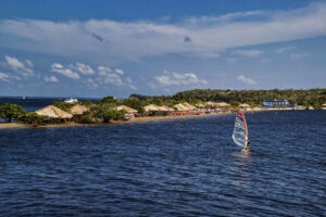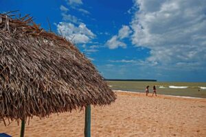 Em plena floresta amazônica, a 37 quilômetros do município de Santarém no Pará, encontramos a praia de águas claras de Alter do Chão. Conhecida como o “caribe amazônico” é banhada pelo Rio Tapajós, possui paisagens incríveis de beleza, ganhou reconhecimento internacionalmente em 2009, quando o jornal britânico The Guardian a considerou a praia de água doce mais bonita do mundo.