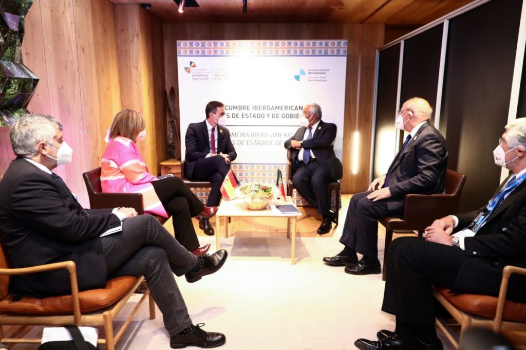 Encuentro con el PM de Portugal, @antoniocostapm, en la #CumbreIberoamericana. Continuaremos colaborando en América Latina, clave para nuestros países, por las muchas sinergias que compartimos. Una vez más, demostramos la solidez de los vínculos que nos unen a España y Portugal. pic.twitter.com/xMTfQ78Qcb