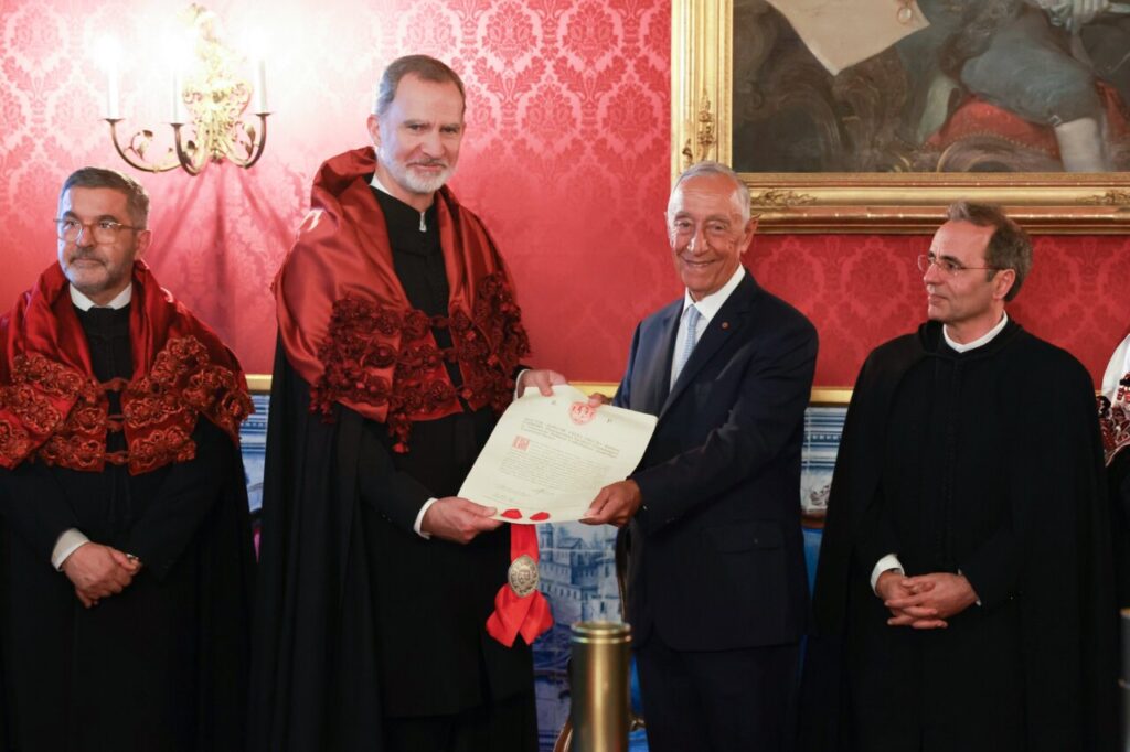 Este será o último encontro (muito provavelmente) oficial de Marcelo Rebelo de Sousa como chefe de Estado português com estas duas figuras. Na Universidade de Coimbra, Marcelo Rebelo de Sousa presidiu a entrega dos Doutoramentos Honoris Causa a Filipe VI de Espanha e ao Presidente Sergio Mattarella. A cerimónia aconteceu na sala dos Capelos (chapéu de uso obrigatório em cerimônias de formatura que marca a passagem para a vida profissional). Os chefes de Estado de Espanha e de Itália fizeram o percurso da biblioteca Joanina até à sala dos capelos, vestidos de capa e batina. Pela primeira vez, um monarca e um republicano são distinguidos ao mesmo tempo. Os doutoramentos honoris causa na Universidade começaram no início do século XX e já contaram com cerca de 200 nomeações. A cerimónia começa com um cortejo dos doutores com os capelos na cabeça, cada um com a cor representante do seu curso, em frente dos novos distinguidos.
