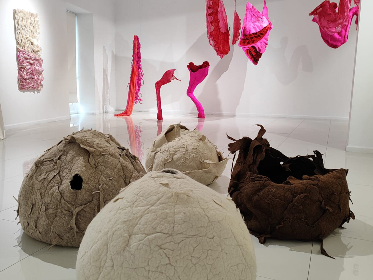 Em destaque está agora a exposição que se encontra em Cáceres e esteve patente na Covilhã entre julho e setembro. A mostra coletiva apresenta trabalhos de seis artistas portugueses e outros seis de Espanha, selecionados e organizados por Lala de Dios e Cláudia Melo, diretora artística da bienal Contextile em Guimarães. “É um grupo muito diverso em termos de abordagem artística, mas que trabalha e reflete sobre o mesmo meio têxtil, que é a lã”, esclarece a curadora portuguesa.