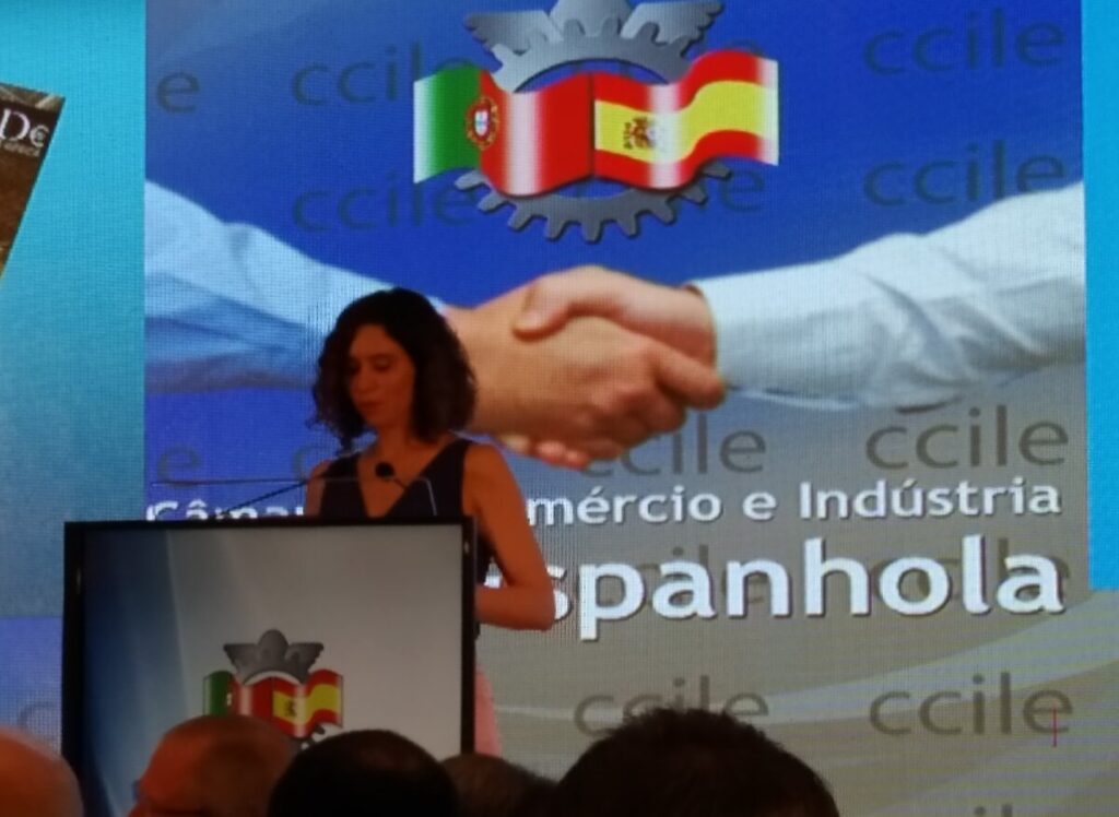 Num momento de perguntas e respostas, Díaz Ayuso explicou que gerir uma comunidade (ou país) é um pouco diferente de uma empresa, mas é possível tirar alguns ensinamentos. No encontro, organizado pela Câmara de Comércio e Indústria Luso-Espanhola, defendeu, como forma de reforçar os laços entre os dois países, mais políticas e uma maior criatividade.