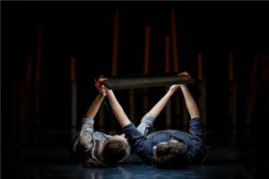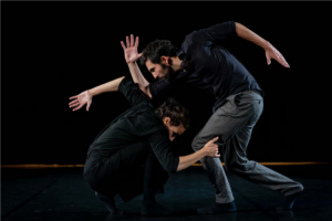 “Uma grande viagem emocional e psicológica, antes de ser física, com as obras de Saramago.” É assim que os autores descrevem, ao EL TRAPEZIO, o seu processo de “construção com o corpo” dos textos e personagens da literatura saramaguiana. Tudo começou em 2020 com a leitura de obras como As intermitências da morte ou O homem duplicado, que São e António repartiram entre si, e que “ganharam força” com os sentimentos que foram despontando, isolados pelo contexto pandémico que todos vivíamos. “Foi muito duro, tudo parecia uma utopia que nos conduzia a uma realidade crua. O facto de estarmos a viver aquilo também nos trouxe uma inspiração exterior que acrescentou um peso ao que estávamos a ler.”