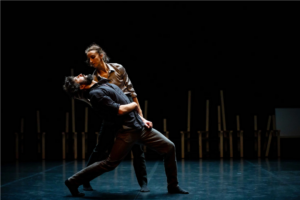 Um dos momentos mais marcantes da peça aparece como referência ao Ensaio sobre a cegueira, em que a cena de violação é recriada com recurso a movimentos repetitivos do corpo do bailarino entre os intervalos dos braços e pernas de São Castro. “Fizemos a cena sem ser explícita, mas não deixando de ser forte”. O que também se pode dizer do olhar intenso e do toque várias vezes evocado, representando as personagens Baltasar e Blimunda de Memorial do Convento.
