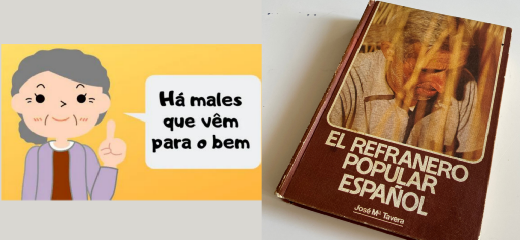 São os ditados populares “los refranes o dichos” em castelhano, frases ou expressões sábias, passadas de geração para geração; quem nunca ouviu: “Cada macaco no seu galho”, “Quem tem pressa come cru” ou “Escreveu não leu, o pau comeu”?
