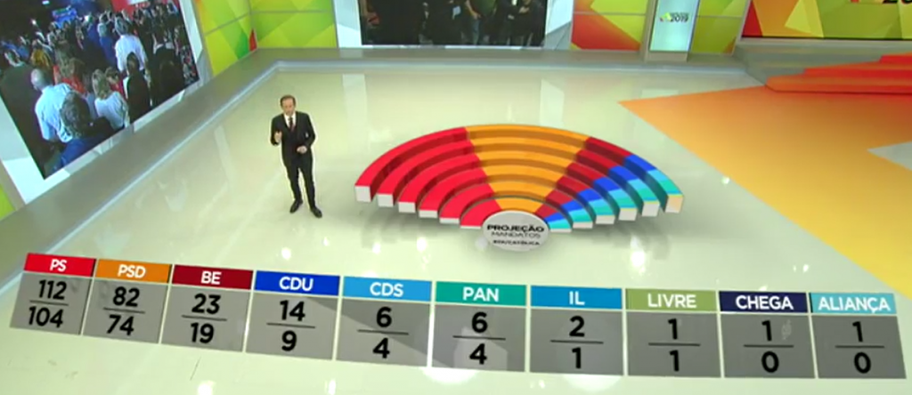 CDS-PP e PAN surgem empatados nesta projeção, com três a cinco por cento dos votos, ou seja, com quatro a seis deputados.